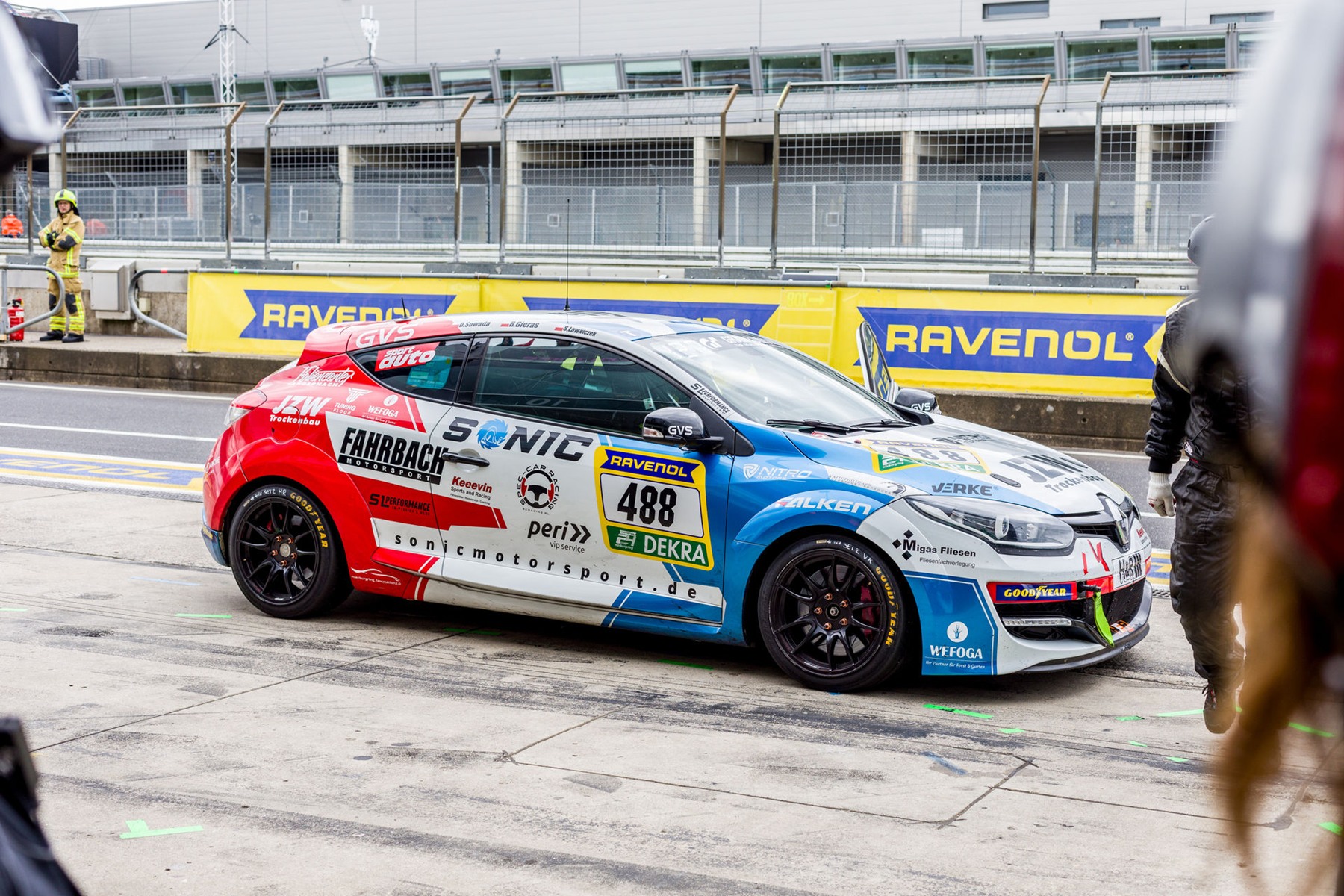 Ekipa Keeevin Sports and Racing niezwłocznie zabrała się za ocenę strat i pomimo pierwszych niezbyt przychylnych opinii podjęła się odbudowy auta. W międzyczasie Sonic przyprowadził drugie Megane, które zostało dawcą części, a właściciel serwisu oddelegował 9 mechaników do walki o powrót na trasę. Naprawa odbywała się pod okiem sędziów technicznych i około godziny 5:30 samochód był gotowy do restartu wyścigu, który zaplanowany był na godzinę 7 rano.