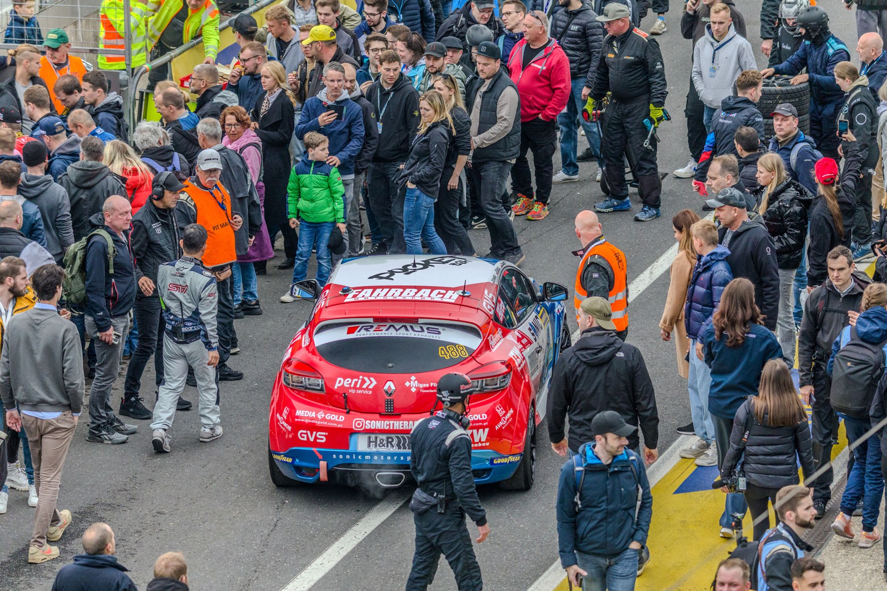 Niedzielny poranek w górach Eifel nie zwiastował szybkiego powrotu do rywalizacji. Miejscowi, widząc mgłę unoszącą się nad torem, nie wróżyli restartu przed południem, a organizatorzy co 30 minut przekładali ponowny start wyścigu. Około godziny 9:30 otrzymaliśmy komunikat o ustawieniu aut na polach startowych.